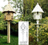 Hexagonal body and roof. Two levels of three nests supplying nesting for six pairs of doves.